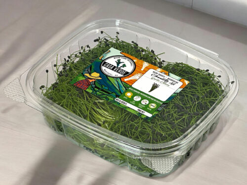 A refined, aromatic microgreen with smooth garlic flavor, slender green shoots, and a clean allium finish — ideal for seafood, soups, dumplings, eggs, noodle dishes, and elegant modern plating.