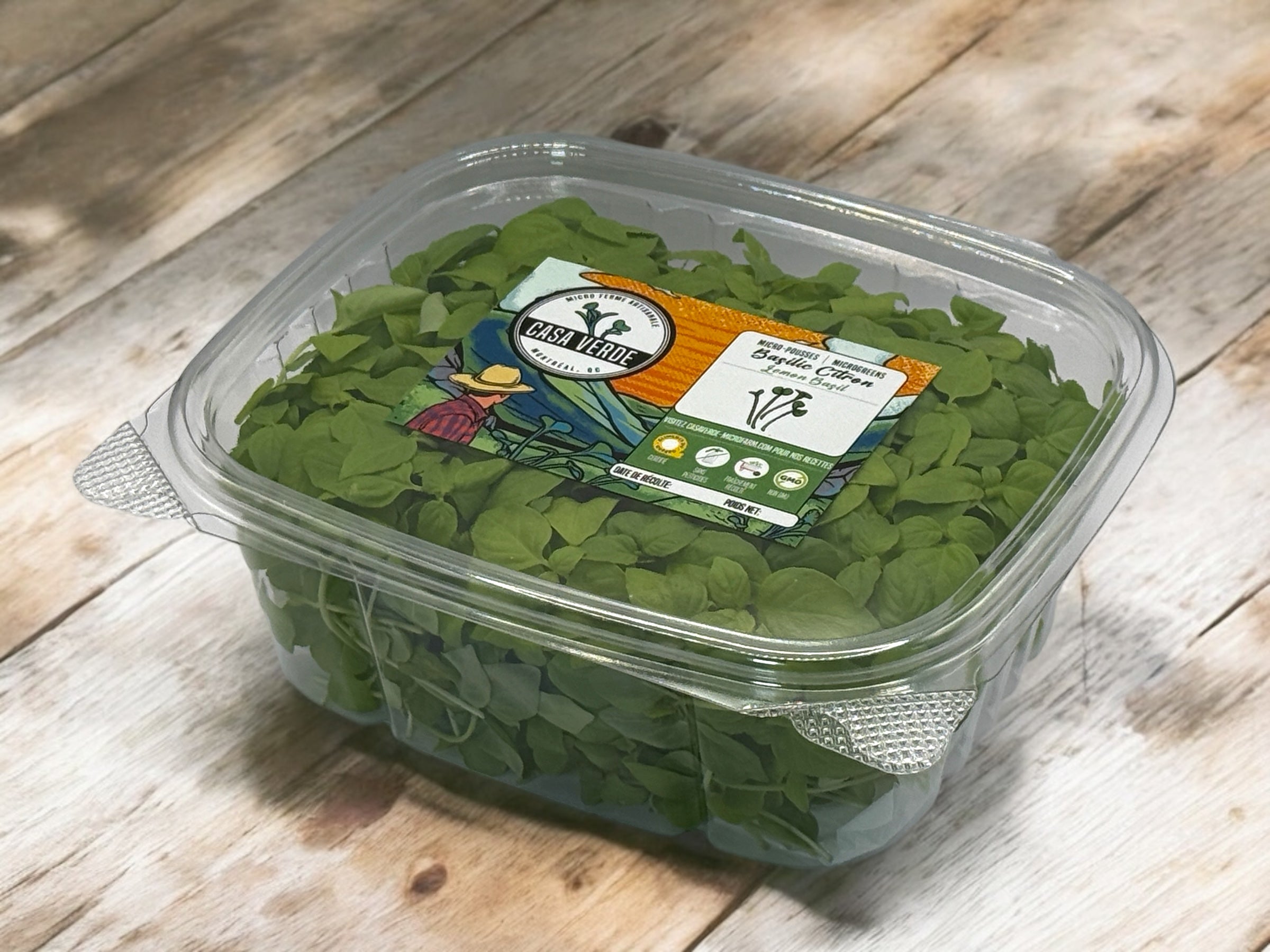 Bright, citrusy, and beautifully fragrant — Lemon Basil microgreens from Casa Verde bring freshness and aromatic lift to seafood, salads, desserts, and cocktails.