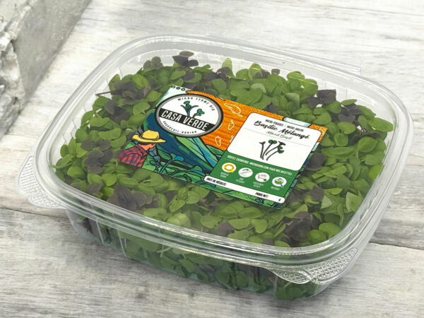 This three-week Stage 2 blend of Genovese and Purple Basil is grown to maximize volume, essential-oil richness, and structural integrity. At Casa Verde Microfarm, we cultivate this mix under tuned lighting to deepen purple pigmentation, broaden leaf development, and heighten aromatic intensity.