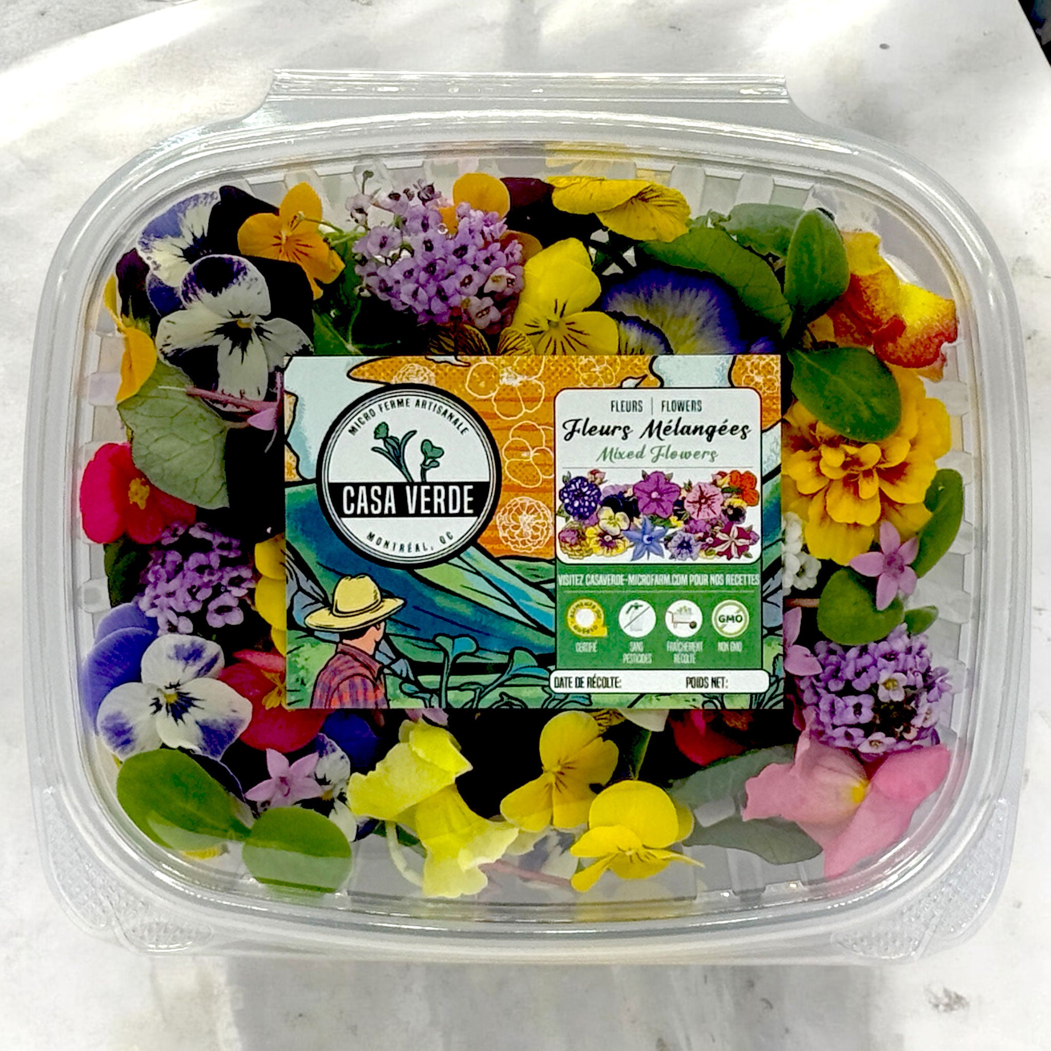 Ready to turn your plates into a literal work of art? Our Mixed Edible Flower collection is the ultimate "wow factor" for any dish. This isn't just a random handful of petals; it’s a carefully curated, seasonal selection of our most vibrant and flavorful blossoms, hand-picked at our Vaudreuil-Dorion vertical farm.