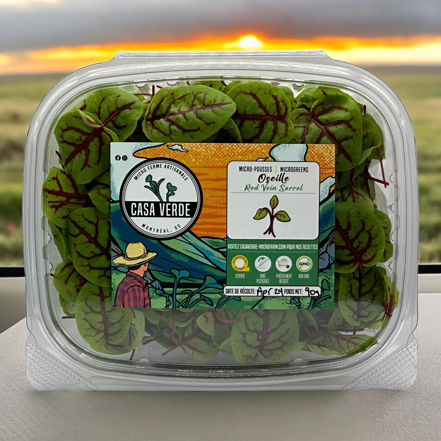 At Casa Verde Microfarm, we grow sorrel in controlled conditions to develop bold vein coloration, maximize citric flavor, and maintain delicate leaf integrity.